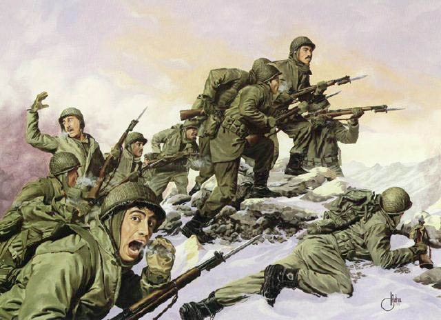 *artwork by Dominic D’Andrea depicting the U.S. 65th Infantry Regiment’s bayonet charge against a Chinese division during the Korean War